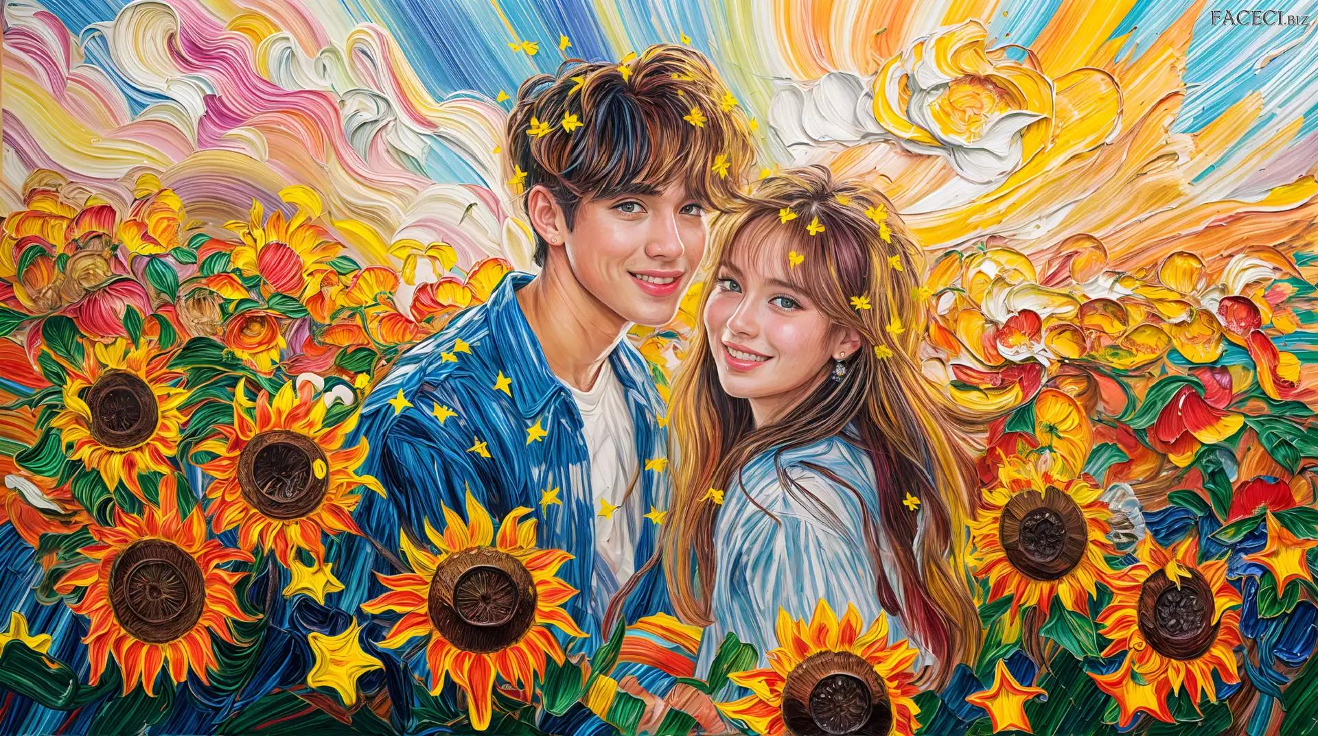 Chłopak, Dziewczyna, Grafika, Słoneczniki - faceci.biz